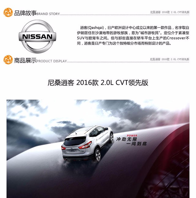 尼桑逍客 2016款 2.0L CVT领先版